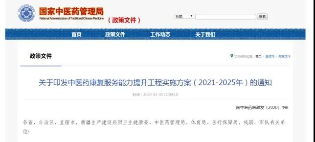 國家六部委發(fā)文:未來五年,社區(qū)中醫(yī)康復(fù)成為基層風(fēng)向標(biāo)。國家衛(wèi)生健康委員會、國家中醫(yī)藥管理局、國家體育總局、國家醫(yī)療保障局、中國殘疾人聯(lián)合會、中央軍委后勤保障部衛(wèi)生局6部門聯(lián)合印發(fā)《關(guān)于印發(fā)中醫(yī)藥康復(fù)服務(wù)能力提升工程實施方案(2021-2025年)的通知 》,旨在充分發(fā)揮中醫(yī)藥在疾病康復(fù)中的重要作用,提高中醫(yī)藥康復(fù)服務(wù)能力和水平。