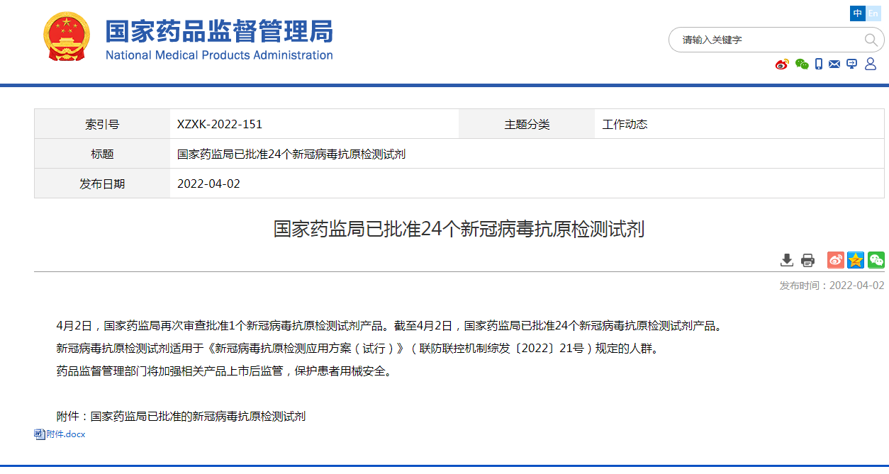 國家藥監(jiān)局批準(zhǔn)24個新冠病毒抗原檢測試劑
