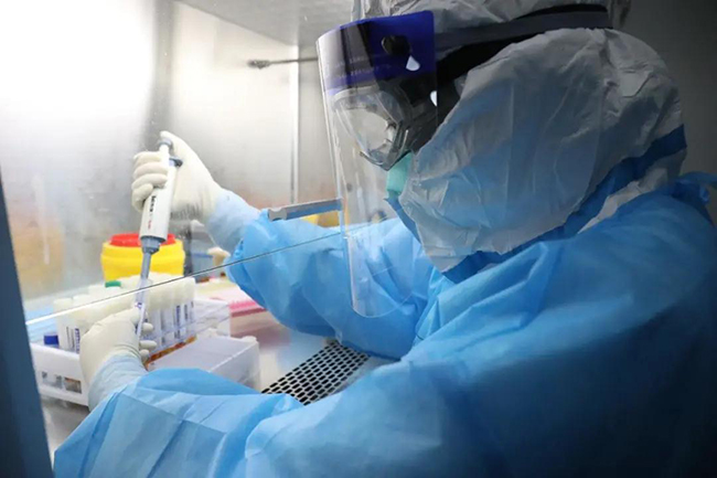 打開樣本前,檢測人員需穿戴好個(gè)人裝備防護(hù)裝備,如防護(hù)服、口罩、護(hù)目鏡、面屏、雙層醫(yī)用乳膠手套、防水靴套,每個(gè)步驟不能出錯(cuò)。