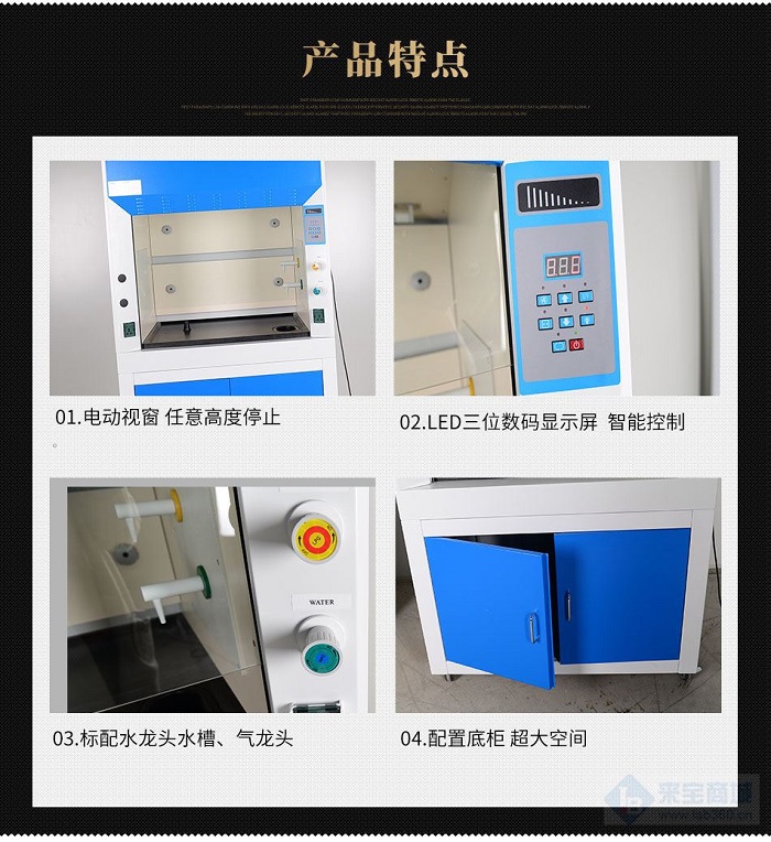 8、通風(fēng)柜配置底柜,底柜采用1.0mm冷軋鋼板經(jīng)防銹處理,靜電噴涂,具有較好的光潔度與耐腐蝕性;底柜1400*730*605mm(L×D×H)的超大空間可以放置實(shí)驗(yàn)室用品;底柜與上柜體配套使通風(fēng)柜更加美觀實(shí)用。