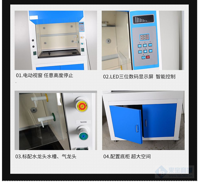 9、通風(fēng)柜配置壁式供水考克、供水流量控制閥、壁式供氣考克、供氣流量控制閥、實驗室水槽,方便實驗進(jìn)行。