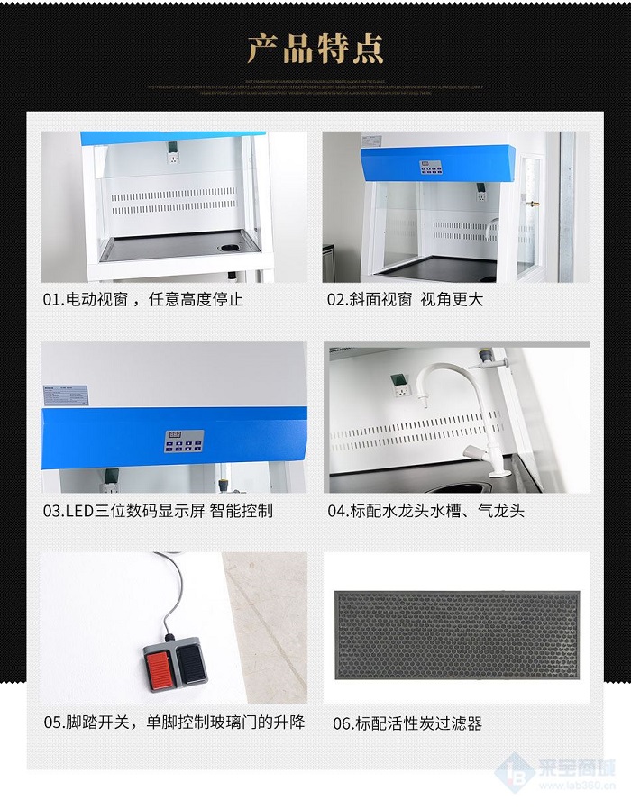 長度1.8米、斜面通風(fēng)柜電動視窗、標(biāo)配活性炭過濾器