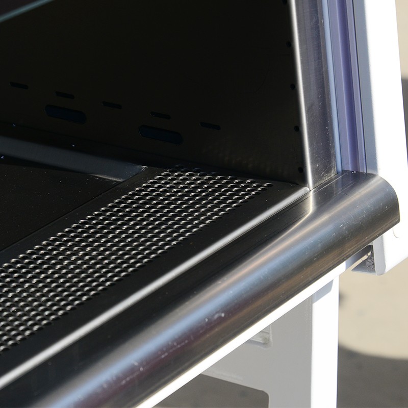 4、工作臺面材質為優(yōu)質304#不銹鋼,采用盆狀式設計,即使實驗有廢液溢出,也不會流入積液槽中,便于清理;
