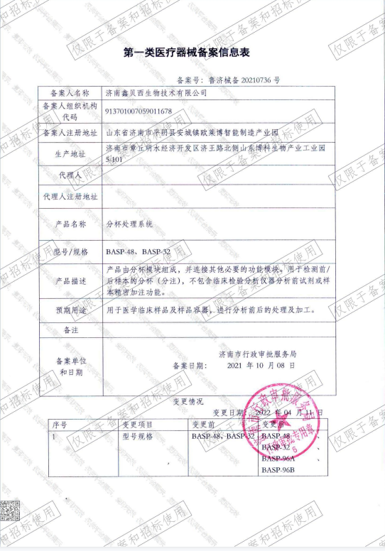 OLB-PR96分杯處理系統(tǒng)招標(biāo)參數(shù)