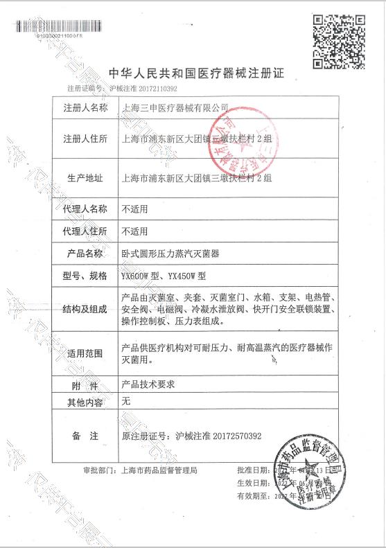 三申YX450W臥式圓形壓力蒸汽滅菌器