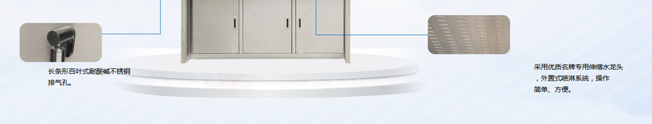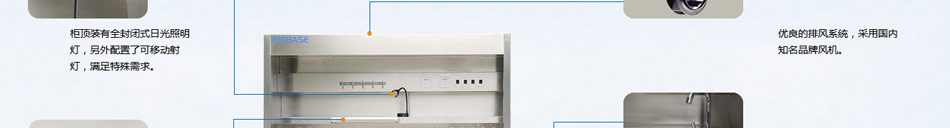 2. 下排氣系統(tǒng),大功率吸風(fēng)裝置,低噪音。下排風(fēng),長(zhǎng)條形百葉式耐酸堿不銹鋼排氣孔。泛仕達(dá)250風(fēng)機(jī)。(標(biāo)配)