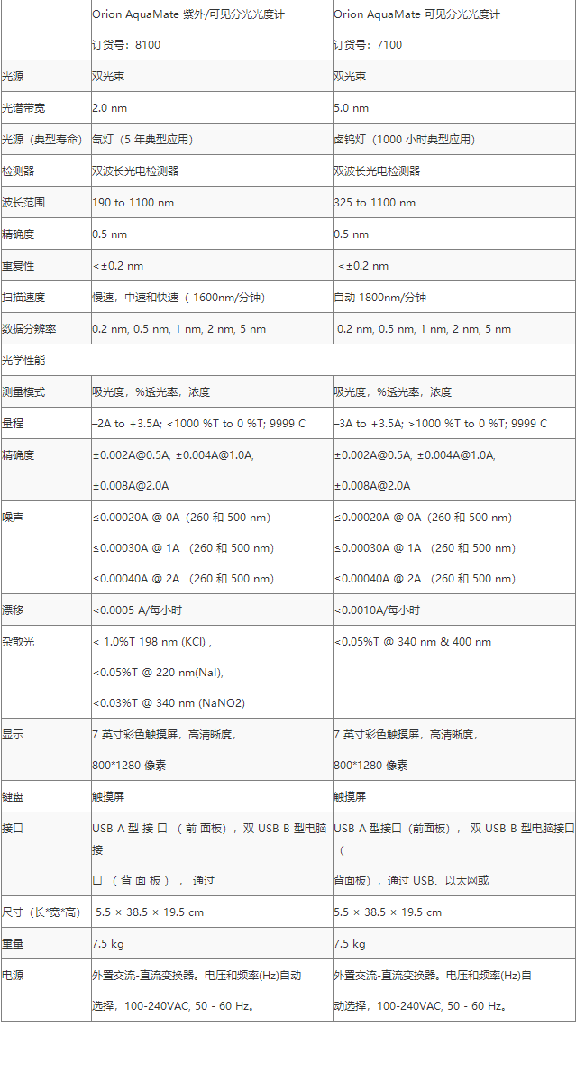 奧立龍AquaMate8100分光光度計(jì)產(chǎn)品技術(shù)參數(shù) :