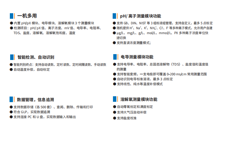 可檢測(cè):MV。PH,PX,離子濃度,電導(dǎo)率,電阻率,TDS,鹽度,溶解氧,飽和度,溫度