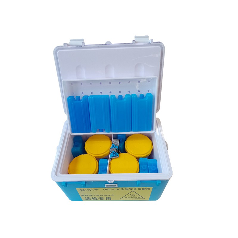 保溫箱1只 數(shù)顯溫度計1個 95KPa生物安全運輸罐5只, 海綿試劑管托5只 吸附棉5片 蓄晶冰盒11個 |