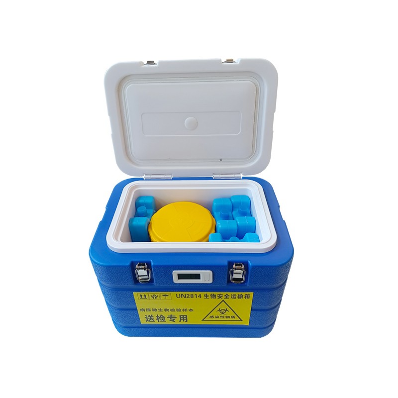 保溫箱1只 數(shù)顯溫度計1個 95KPa生物安全運輸罐8只, 海綿試劑管托8只 吸附棉8片 蓄晶冰盒11個 |
