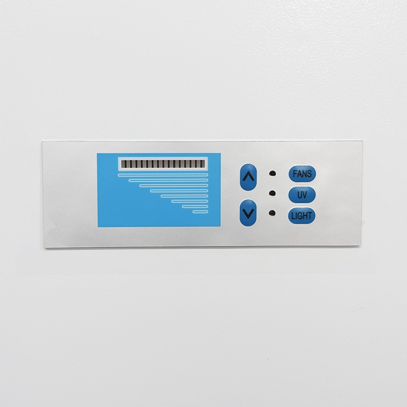 1.8控制面板采用輕觸式開關(guān),按鍵由風(fēng)機鍵、照明鍵、紫外鍵、電源鍵、風(fēng)量減小鍵、風(fēng)量增大鍵組成,易于操作;顯示屏顯示內(nèi)容有:通過光柱多少顯示風(fēng)機的風(fēng)速;