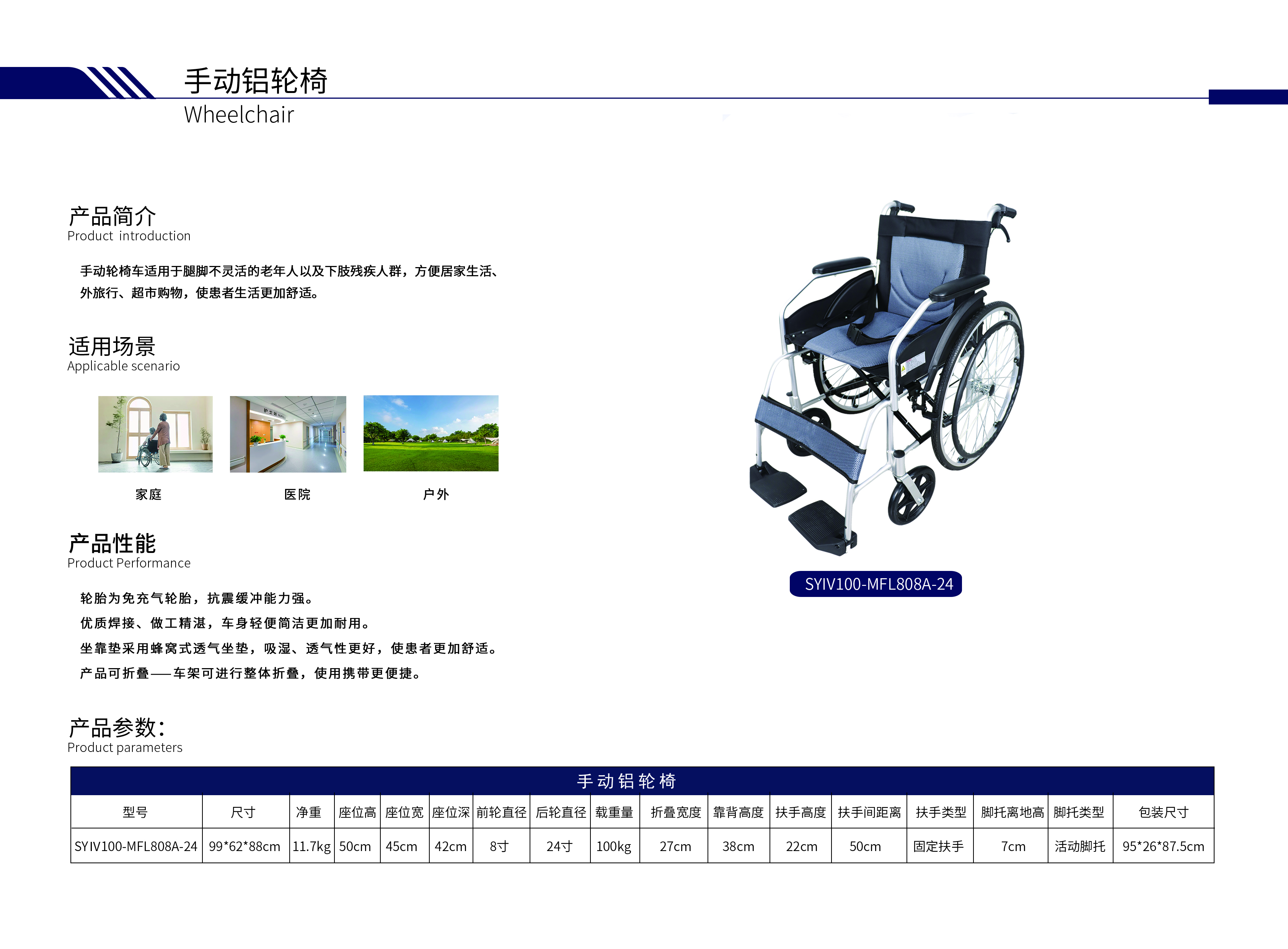 歐萊博SYⅣ100-MFL808A-24手動輪椅