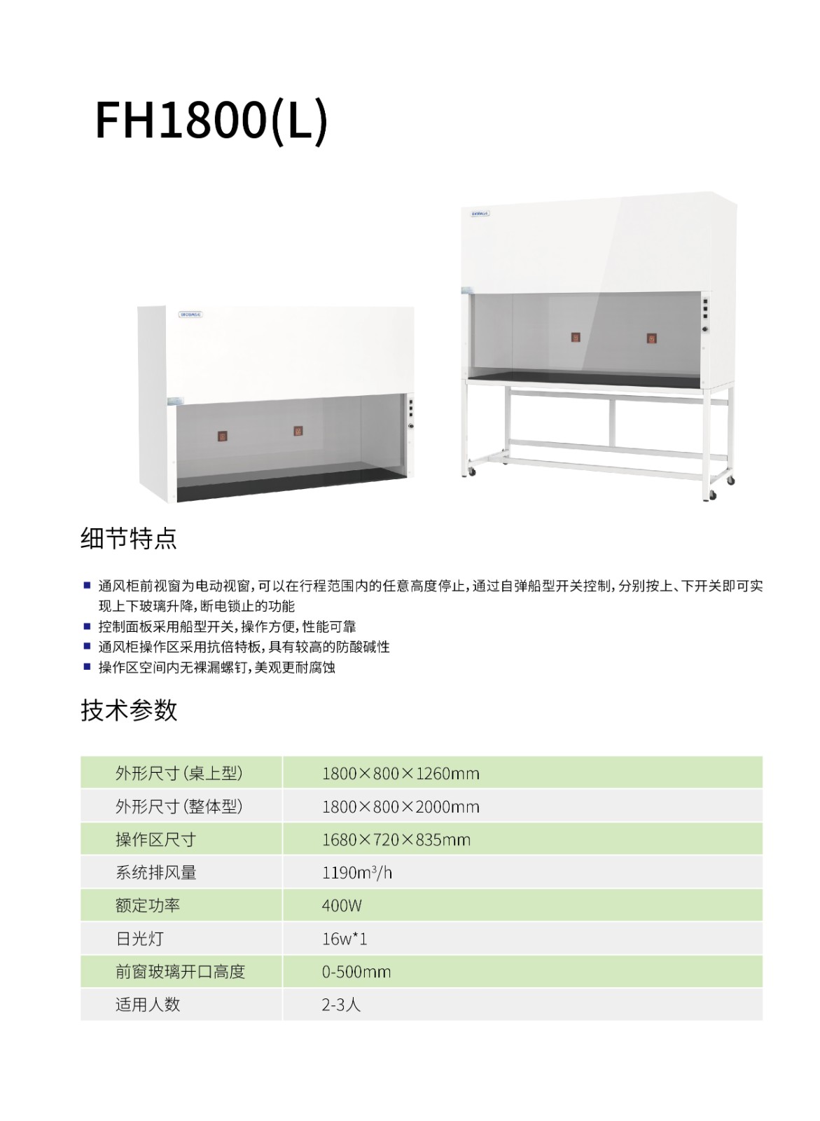 博科通風(fēng)柜FH1800(L)(桌上型)
