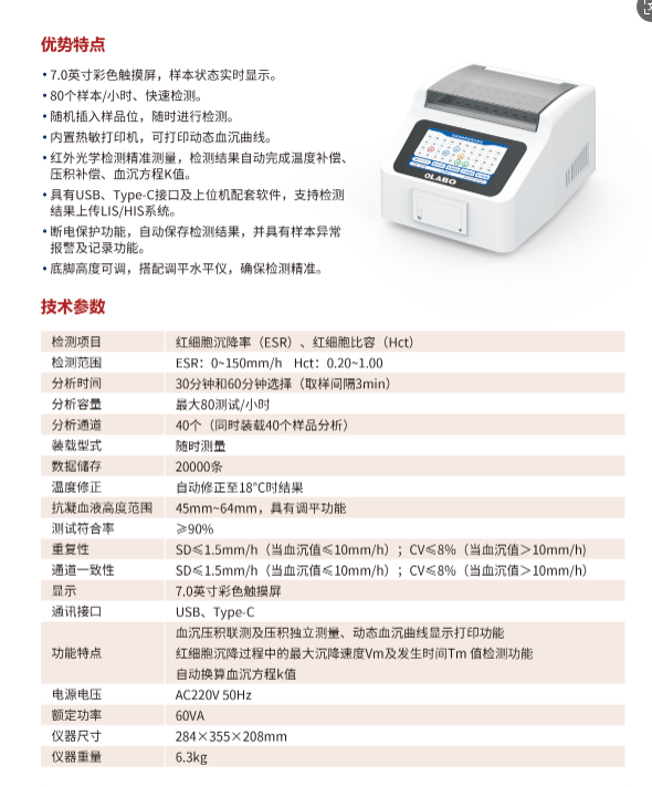 1、測(cè)量項(xiàng)目:血液紅細(xì)胞沉降率測(cè)定(測(cè)量范圍:0-150mm/h)